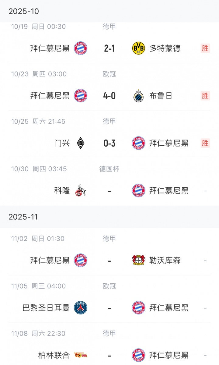 10月26日讯 在周末驯顺门兴后,本赛季开局拜仁获得各项赛事13连胜。