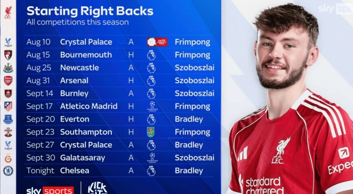 此役布拉德利担任利物浦首发右后卫,据太空体育统计,本赛季利物浦莫得任何右后卫鸠集4场首发。