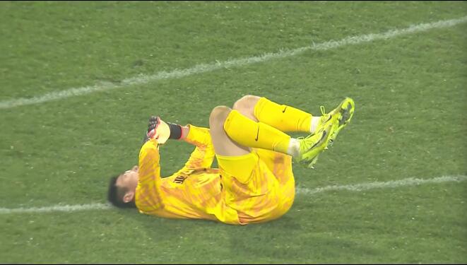 10月25日讯 亚泰补时先丢一球后,门将王智峰拖延技巧染黄,随后他清晰抽筋被裁判告戒!