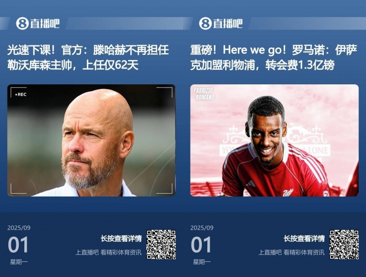 09月02日讯 新赛季夏窗也曾杀青,伊萨克在戒指日成为标王,同期也成为了转会窗的第一流量王。但是他却不是头条新闻。昨日,勒沃库森主帅滕哈赫的光速下课,成为了头条。