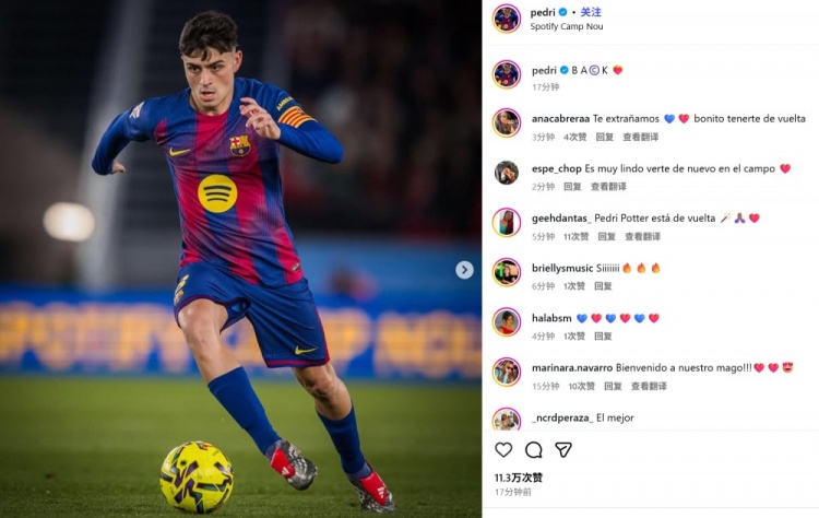 11月30日讯 巴萨在本轮西甲焦点战主场3-1逆转阿拉维斯,中场佩德里替补出战完成复出。