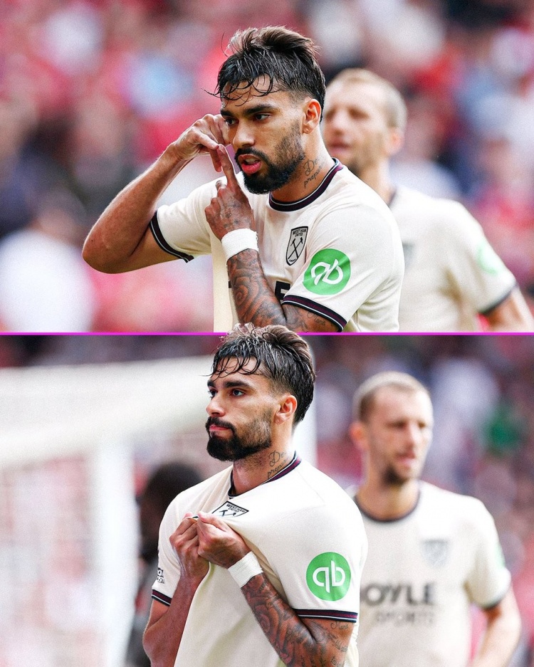 进球后,帕奎塔以一个迥殊的形势庆祝:先作念出接电话的算作,然后把“电话”扔掉,接着亲吻了西汉姆联的队徽。