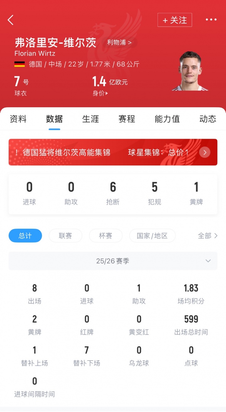 09月29日讯 着名转会记者罗马诺更新个东说念主youtube频说念,谈到了近期维尔茨的推崇以及利物浦对球员的见解,暗示赤军仍然对维尔茨抱有信心。