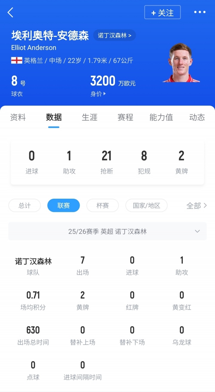 现年22岁的安德森于2024年以3500万镑从纽卡转会至诺丁汉丛林,如今已成长为英超最戒备的新星之一。