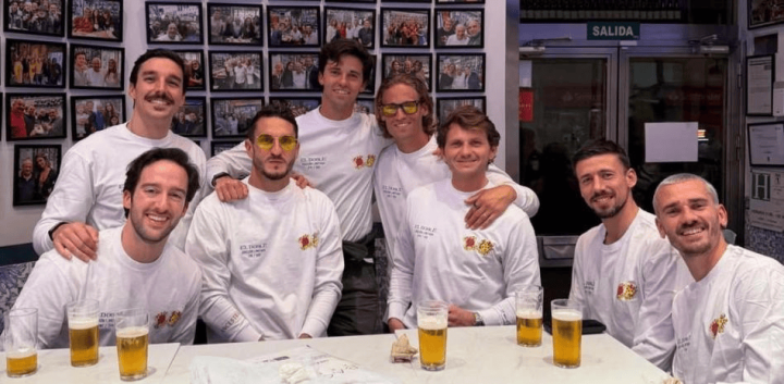 在场的足球选手包括格列兹曼、科克、略伦特和朗格莱,他们决定在著名的埃尔多夫啤酒馆延续这份喜悦。这是马德里最经典、最地道的啤酒馆之一,位于蓬萨诺街,多年来已成为不仅是当地人和游客,也是娱乐、时尚和社交界名人的参考地点。