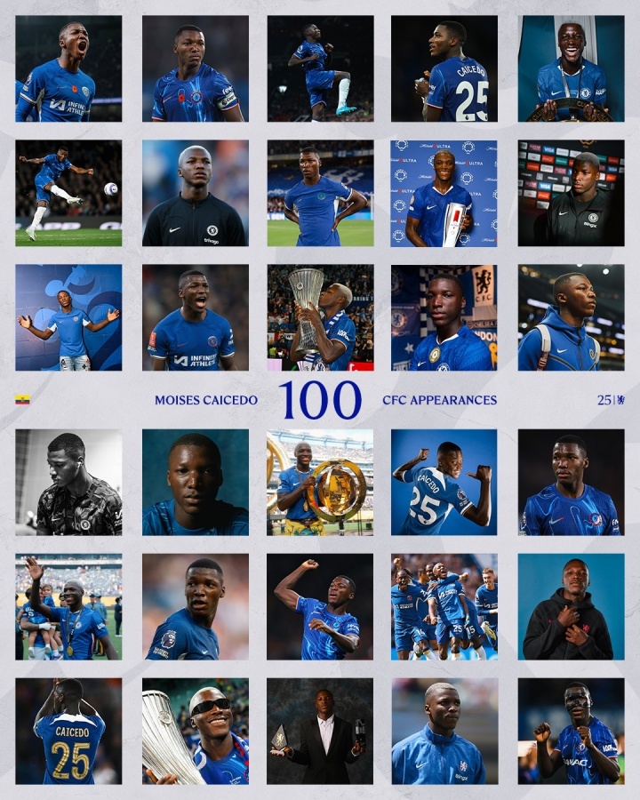这场比赛是凯塞多的切尔西100场里程碑,他在2023年8月加盟切尔西,转会费高达1.16亿欧。球员着力两年多,匡助切尔西斩获2座冠军,他出战100场收成4球10助。这位23岁的厄瓜多而后腰四肢蓝军铁闸,俨然也曾成为了足坛同位置最顶级的球员之一。