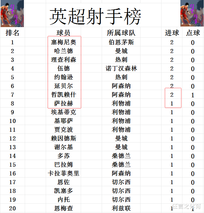 弓手榜方面,哈兰德,理查利森,伍德,约翰逊,延贝尔,哲凯赖什,塞梅尼奥等东谈主2球并排榜首,萨拉赫,基耶萨,恩佐,凯塞多等东谈主1球上榜。