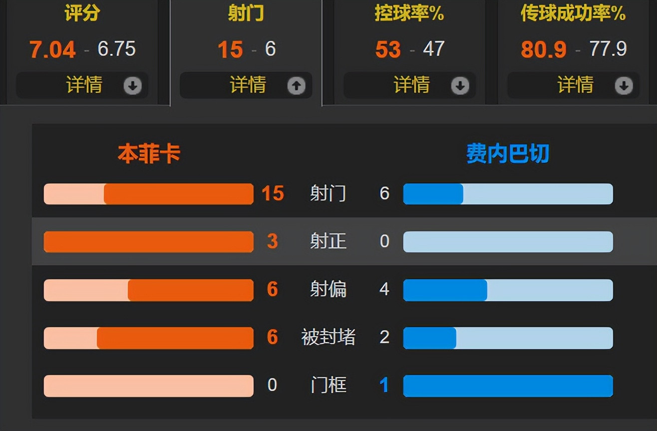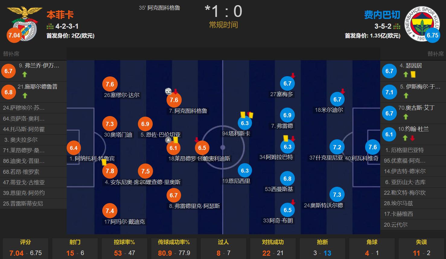 费内巴切全队总身价2.99亿欧元,本菲卡全队总身价3.34亿欧元,不错说两队的实力如故很接近的,但费内巴切十足不是本菲卡的敌手。这个夏天,本菲卡双杀费内巴切,先是在季前赛中3-2打败费内巴切,如今欧冠附加赛要害战1-0小胜费内巴切晋级,又一次杀入了欧冠正赛。
