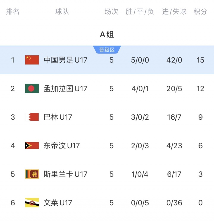 12月01日讯 2026年U17亚初赛松手,中国U16国少五战全胜、进42球0失球,以小组第一晋级正赛。